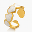 Designed for the modern woman, its alternating heart pattern gleams with soft enamel detailing, reflecting love from every angle. Whether worn solo for a statement moment or stacked for a touch of understated elegance, the Delara Ring adds warmth and refinement to any look.